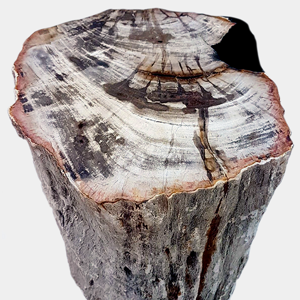 Our craftsmen make this unique and original stool from petrified wood. Wood petrification is a process in which natural wood turns into stone. We love its stunning and distinctive colouring, and the statement of using it as either a side or even bedside table.
