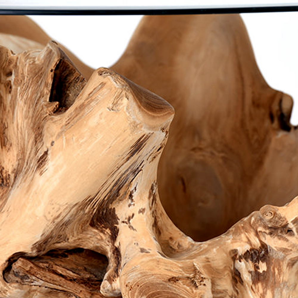 This circular teak root coffee table has a natural shape and pays tribute to the spirit of Nature. Each teak root is completely unique and beautifully finished, adding an incredible talking point to your coffee breaks.