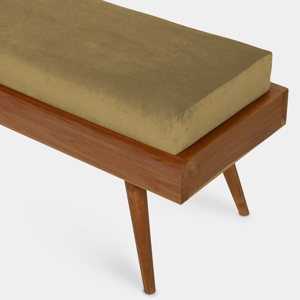 As part of our latest obsession with combining our traditional teak with the luxury of velvet, simulating the tones of the golden accents of our favourite Balinese sunsets, we curated a cushioned bench to team up with our velvet range. The unique piece you've been looking for to add a splash of colour to your dining table or the foot of your bed, adding a touch of Bali chic to your home.