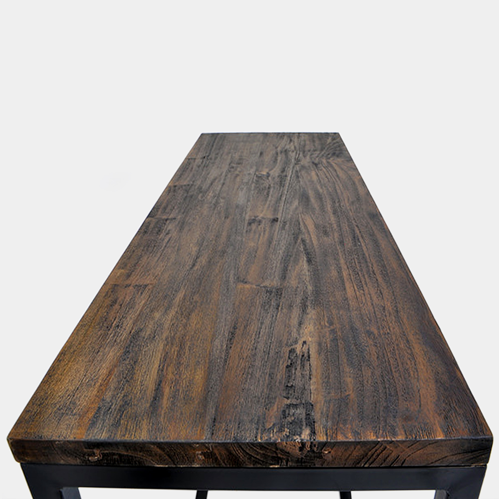 Taking its inspiration from the recycling of Indonesian fishing boats, this rustic console is perfect for adding a natural yet industrial look to your interior. Made from reclaimed teak with an antique finish and black iron legs.