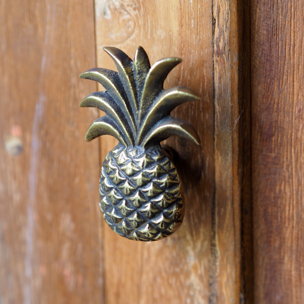 Hand-forged high-quality brass handle in detailed pineapple shape, handmade by local artisans in Bali. The master craftsman descends from generations of gold and silversmiths in Indonesia. Easily attached to any cabinet with the included fitting bolt.