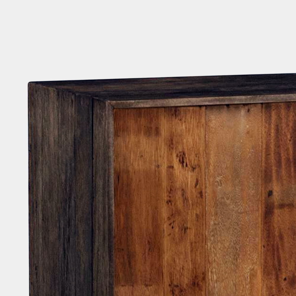 A modern cabinet with a rustic charm made of high-quality teak and an iron base frame. Our artisans treated its timber to keep its natural beauty and to show a history which makes each of these cabinets unique.