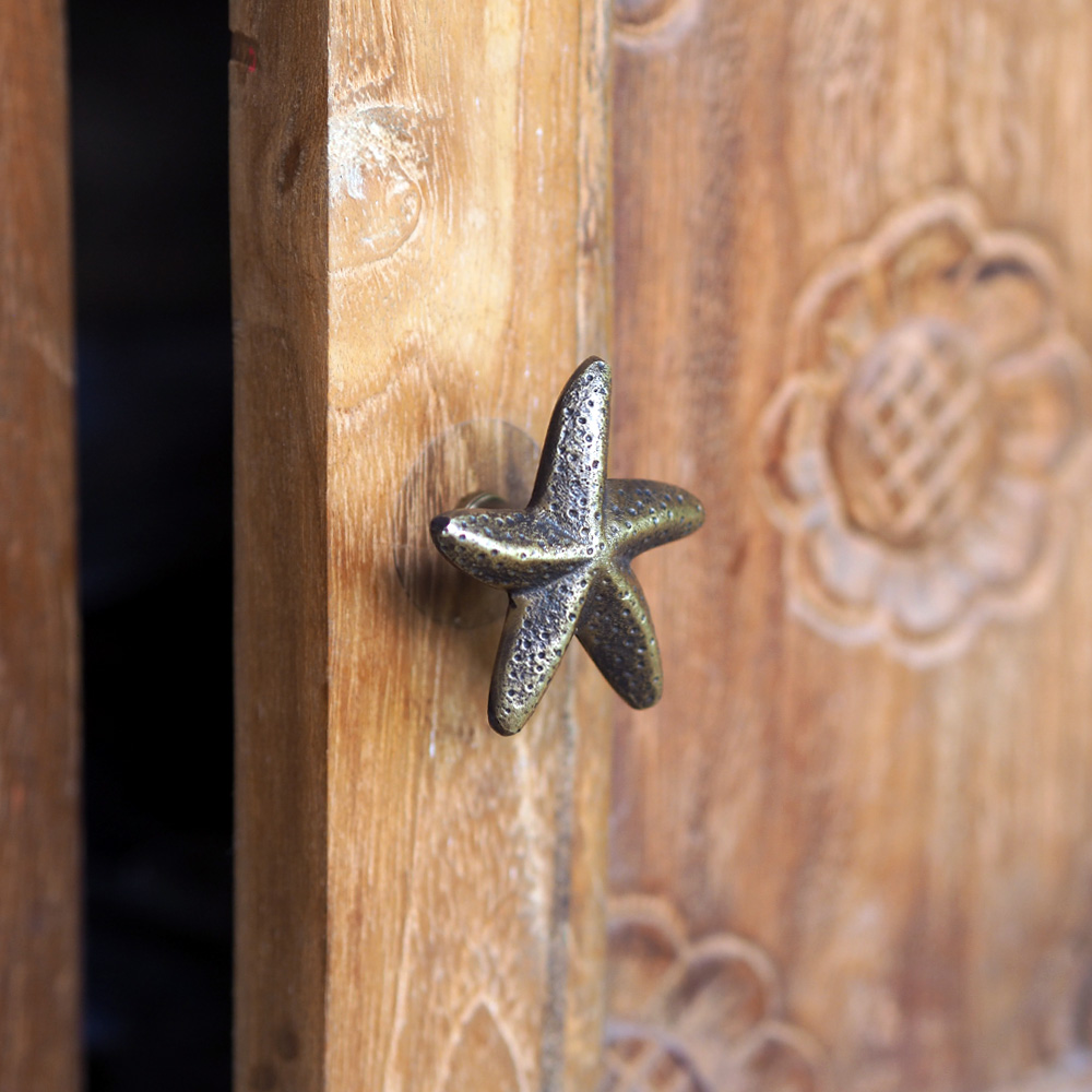 Hand-forged high-quality brass handle in detailed starfish shape, handmade by local artisans in Bali. The master craftsman descends from generations of gold and silversmiths in Indonesia. Easily attached to any cabinet with the included fitting bolt.