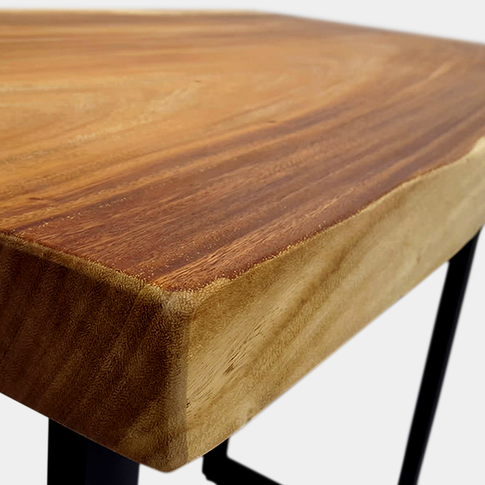 Made from one solid block of suar wood with a thickness of 6 cm, this majestic side console table with its minimal design relies on the natural colour and uniqueness of suar wood. Combined with simple yet sturdy powder-coated iron legs.