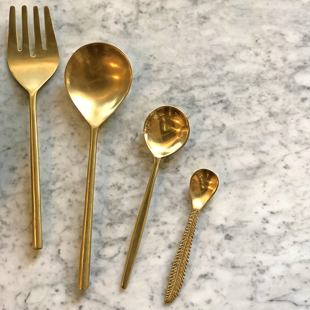 Hand-forged high quality brass dessert spoon with intricate fern leaf detail, handmade by local artisans in Bali. The master craftsman descends from generations of gold and silversmiths in Indonesia.