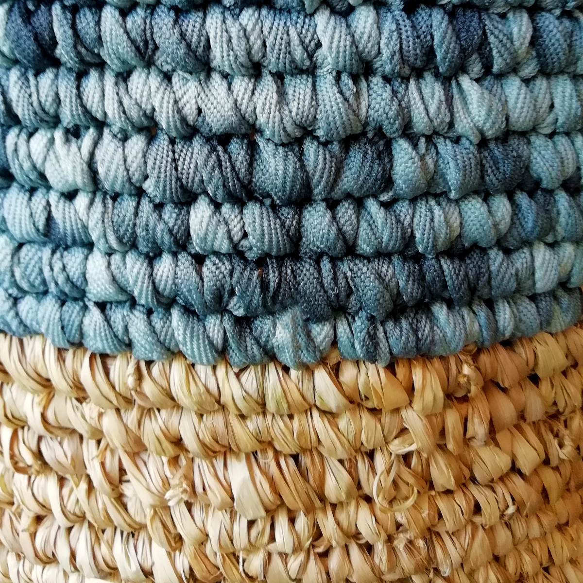 Handmade by our local craftsmen, our set of 3 Indigo baskets are made from twisted organic bamboo fibre combined with a beautifully contrasting indigo dyed cotton ribbon. The colour of the indigo will vary over time, and adds a incredible character as it fades.