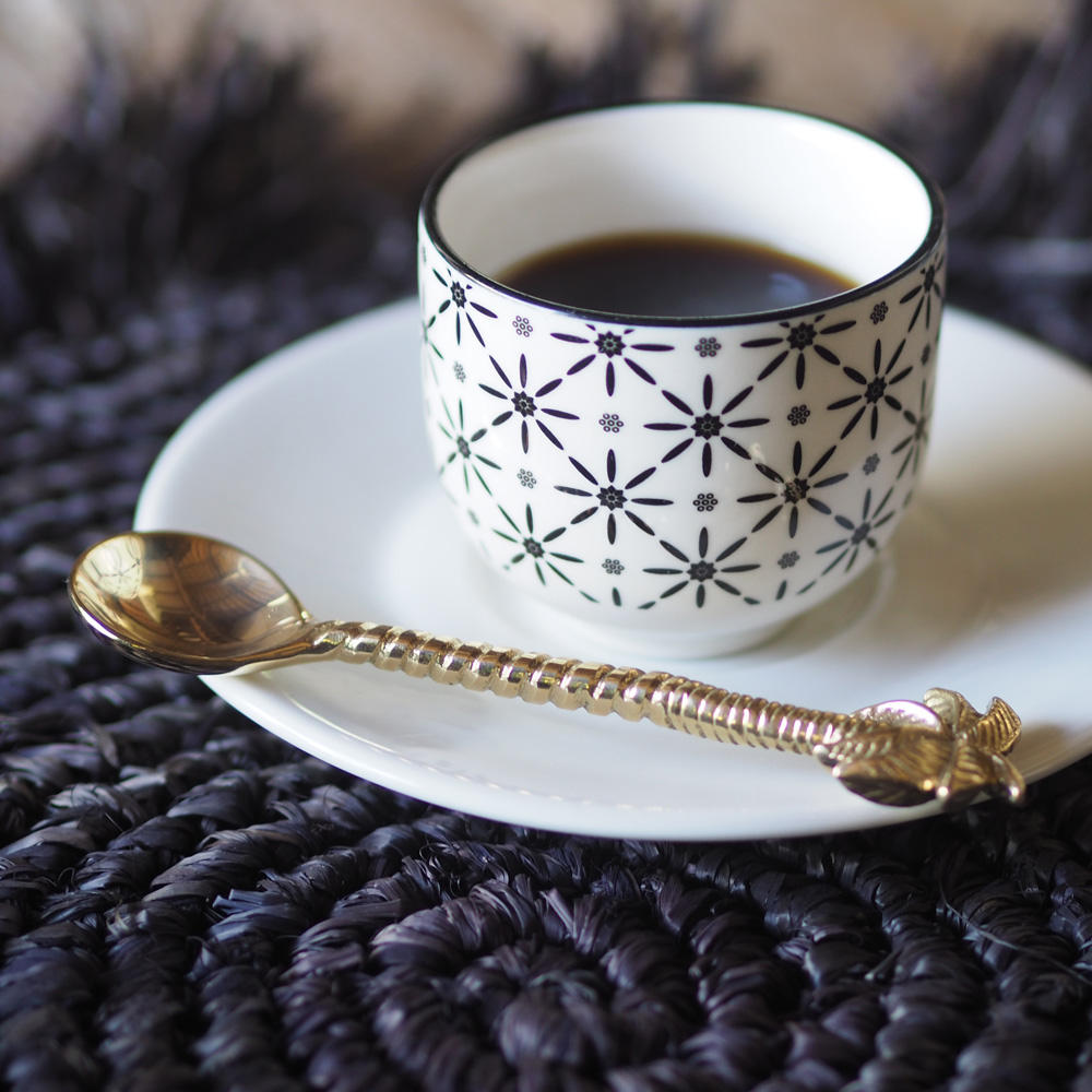 Hand-forged high quality brass dessert spoon with intricate palm tree detail and twisted handle, handmade by local artisans in Bali. The master craftsman descends from generations of gold and silversmiths in Indonesia.