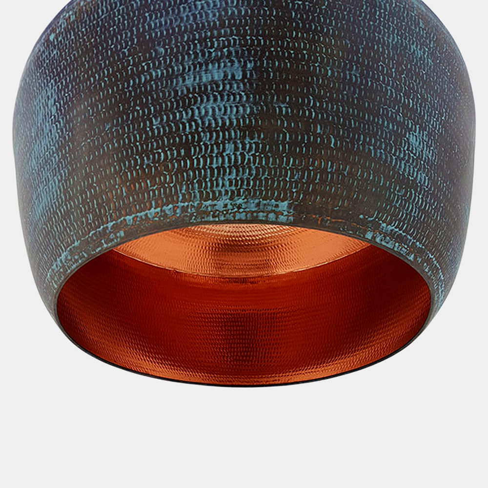 With its trendy copper construction and beautiful turquoise wash, our Passion lamp is a real splash of colour for your interior and provides both a traditional and modern look. Each shade is made by hand for maximum character. Electrical fitting not included.