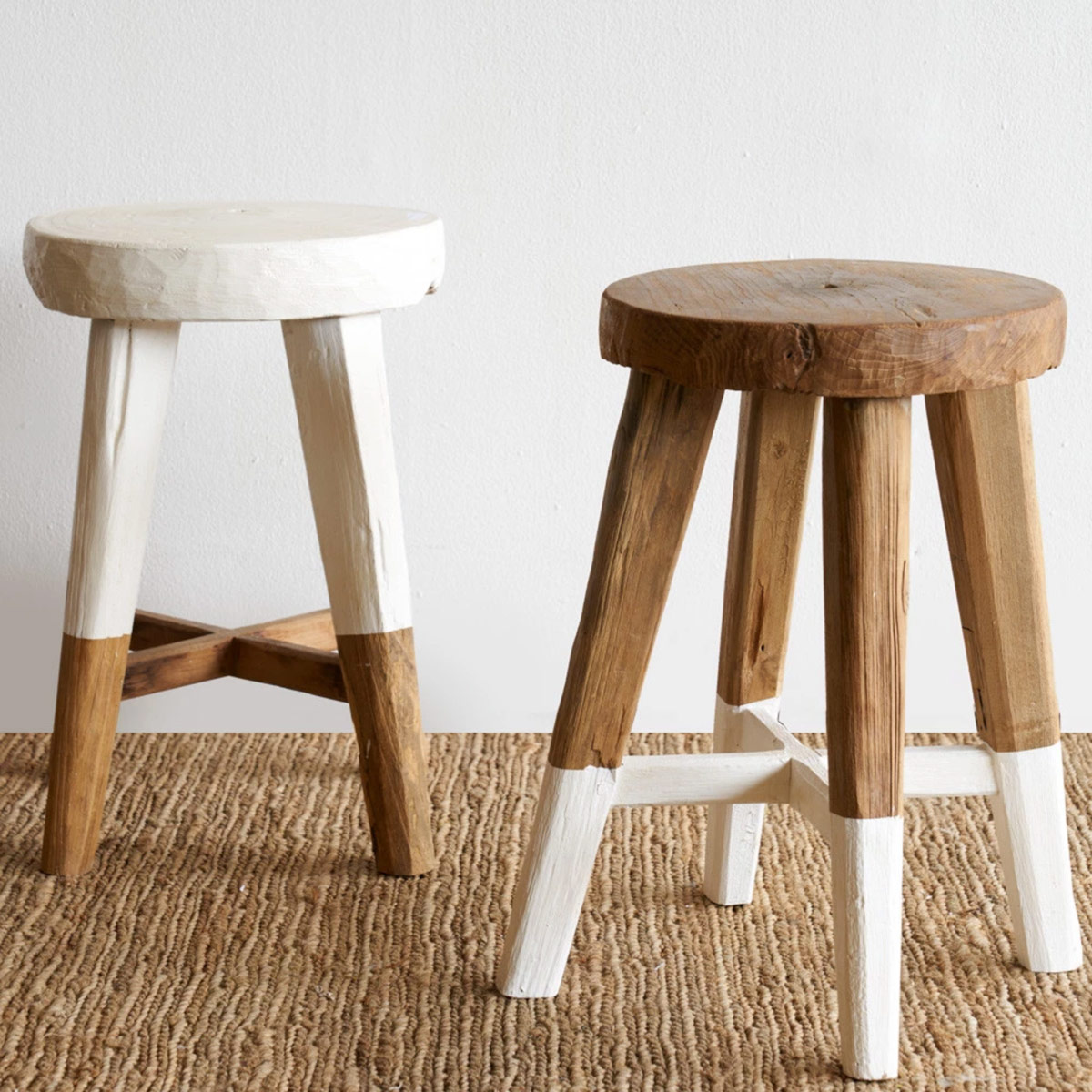 Our rustic Ulu stool is a 4 legged, multi-purpose pedestal made from reclaimed and hand-carved teak. A gorgeous & practical accessory for your living area, bedroom or terrace. This stool is half finished in white matte and the other half in a natural wax, a must have for recreating a coastal look at home!